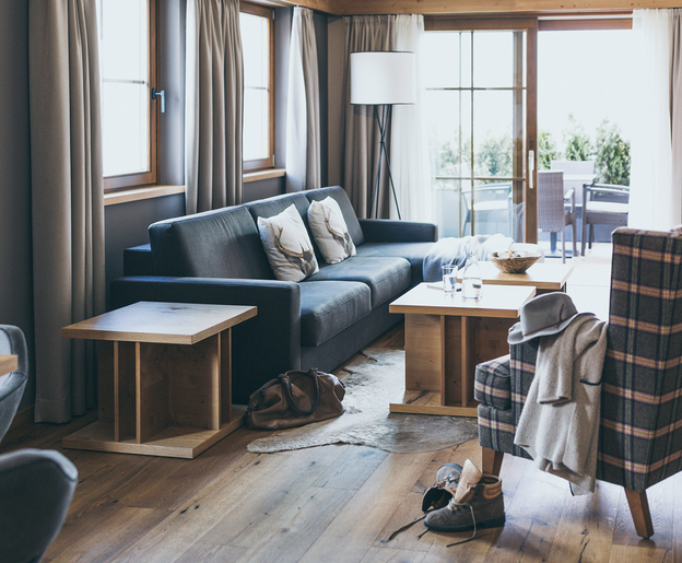 Was dieses Apartment, diese Ferienwohnung Lermoos, auszeichnet? Vieles. Vor allem aber die einzigartige Lage im Erdgeschoß des Hauptgebäudes. Denn die macht die Terrasse möglich, in der selbst die Allerkleinsten sorglos und ausgelassen spielen können, während die Eltern Zeit für sich haben. Von der Terrasse aus haben Sie einen wunderbaren Blick auf die Zugspitze (Terrasse an das Restaurant angrenzend). Gleichzeitig lässt die Ausrichtung am Vormittag viel Sonne herein. Das ist gut, denn natürliches Licht steht der ästhetischen Einrichtung einfach am besten.